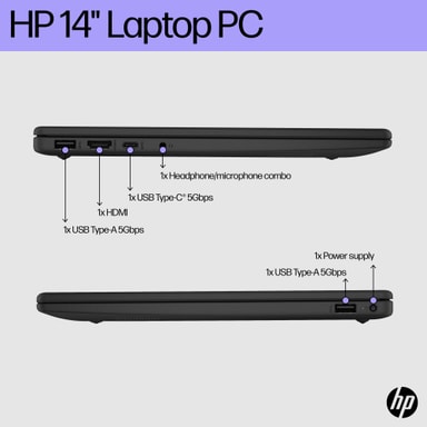 Med en vægt på kun 1,4 kg er HP Laptop 14-ep0829no letvægtig, hvilket gør den nem at have med på farten. Det slanke design i Jet Black tilføjer et strejf af elegance, mens brugen af havbundet og genbrugsplast afspejler HP's engagement i bæredygtighed.