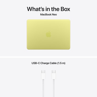 - POWER TIL HVERDAGSOPGAVER – MacBook Neo med A18 Pro-chip er klar, så snart du åbner den, og giver dig ydeevne og AI-funktioner til at komme i mål med det hele, hvad enten du redigerer familiefotos, fræser igennem regneark, bruger AI til at opsummere noter fra timerne eller spiller det sidste nye Apple Arcade-spil.