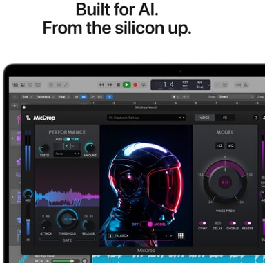 SUPERKRÆFTER FRA M5 – Ud over den hurtigere CPU og samlede hukommelse har M5 også en mere kraftfuld GPU med en Neural Accelerator indbygget i hver kerne, som leverer hurtigere AI-ydeevne. Det betyder, at du kan stryge ufatteligt hurtigt igennem krævende opgaver.