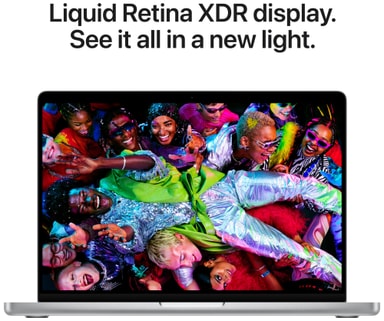 STRÅLENDE PRO-SKÆRM – Liquid Retina XDR-skærmen5 på 14,2" har en lysstyrke på op til 1600 nits6 og op til 1000 nits konstant lysstyrke samt et kontrastforhold på 1.000.000:1. Den fås også med glas med nanotekstur, som reducerer genskin og refleksioner.