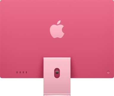 • Porte på bagsiden af en lyserød iMac med fire Thunderbolt-porte, Wi-Fi 6E og Bluetooth-funktioner