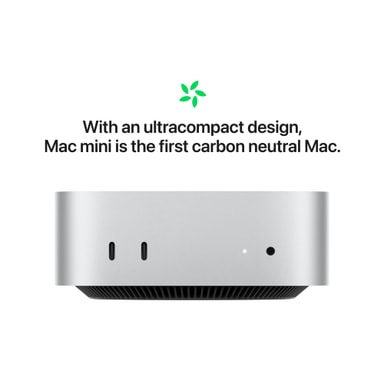 Den meget mindre og meget mere imponerende Mac mini er 12,7 x 12,7 cm ren og skær power. Redesignet med udgangspunkt i Apple-chippen, så den spektakulære M4-chips høje hastigheder og uendelige muligheder kan slippes løs. Med praktiske porte både foran og bagpå.