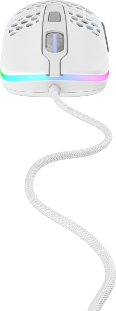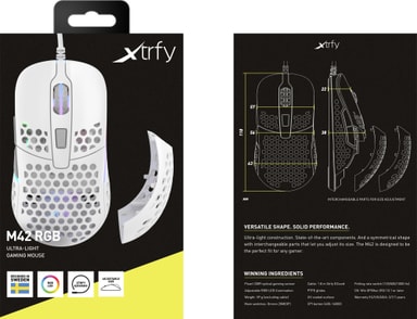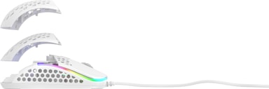 Med Xtrfy gaming musen er du godt forberedt til kampens hede. Den er udstyret med en Pixart 3389 optisk gaming sensor og Omron-knapper. Du kan justere CPI såvel som opdateringsfrekvensen, og du kan endda justere selve musens form takket være de udskiftelige skaller. Musen kan skinne i alle regnbuens farver takket være de brugerdefinerbare RGB-lys.