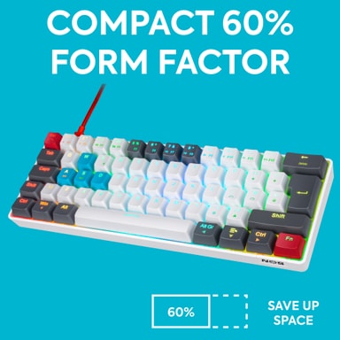 Med NOS C-450 Mini PRO RGB gaming-tastaturet kan du spare plads på dit skrivebord uden at gå på kompromis med ydelsen. Tastaturet er 40% mindre end et almindeligt tastatur med 62 taster og Outemu røde mekaniske switches samt flot RGB-lys med 18 mønstre.Læs mere om produktet