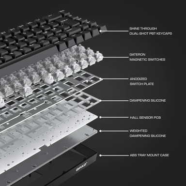 Få præcis feedback og hurtigere responstid med Gateron justerbare magnetiske kontakter, som har en rapid trigger-tilstand, der øjeblikkeligt nulstiller tasterne for reduceret opadgående bevægelse, så du får hurtigere input. Du kan også tilpasse tasteinputtet fra følsomt til hårdt alt efter dine foretrukne spil ved hjælp af aktiveringspunktfunktionen.
