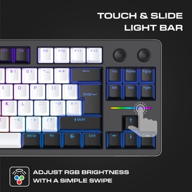 Dette tastatur har en intuitiv berøringslinje, hvor du kan tilpasse RGB-lysstyrken med en simpel berøring og skub.