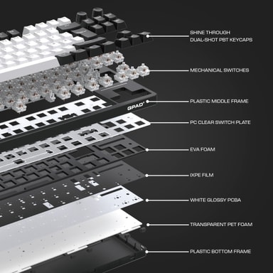 Tastaturet kan prale af en 80% kompakt formfaktor uden taster, hvilket sparer plads på skrivebordet og giver mere plads til musebevægelse. Det inkluderer flere lag skum mellem printpladen og pladen for at absorbere uønsket resonans og forbedre den samlede lyd af tastetryk. De skinnende PBT-taster, der er kendt for deres modstandsdygtighed over for skinnende tekst og slid over tid, sikrer, at teksten forbliver tydelig.