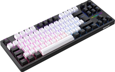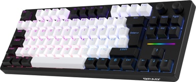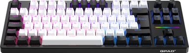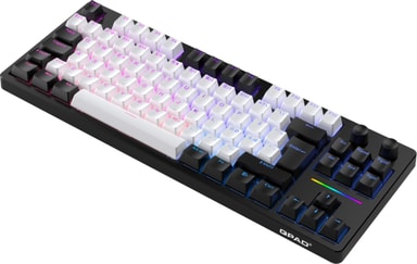 Gør din spil- og skriveoplevelse bedre med dette trådløse QPAD Loop Model 3 tastatur, der har multiplatformsforbindelse, Bluetooth, 2,4 GHz- og USB-forbindelser, en 80 % tenkeyless formfaktor, QPAD-touchbar, dobbelt lydskive og brugerdefinerbar RGB-belysning.