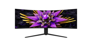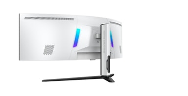 Du ser ikke bare – du føler det. 57” Dual UHD giver bredden af to UHD-skærme og viser skarpe og detaljerede billeder.