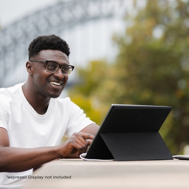 Espresso Case 15-skærmstativet, der er kompatibelt med 15" espresso-skærme, tilbyder bærbarhed og beskyttelse med et magnetisk mikrofiberetui, der fungerer som et stativ.Læs mere om produktet