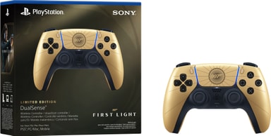 PS5 DualSense 007 First Light Limited Edition controlleren opgraderer din gamingoplevelse med sit stilfulde gulddesign, fordybende haptisk feedback, adaptive triggere, Bluetooth-forbindelse og en indbygget mikrofon.Læs mere om produktet