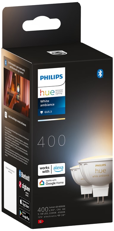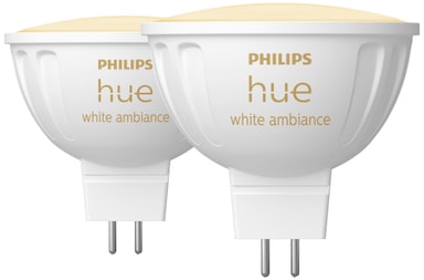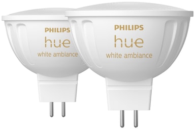 Denne Philips Hue White Ambiance MR16 LED-pære5,1 W 2pk giver dig mulighed for nemt at indstille den rigtige lysintensitet i dit hjem. Lad den fylde rummet omkring dig med forskellige farver og nuancer af hvid, fra kold hvid, til varm hvid, på alle tidspunkter af dagen. For at udnytte endnu mere af dens potentiale kan du installere Philips Hue Bridge.