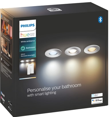 Dette Philips Hue Adore sænkede spotlys 3x5W har 3 forskellige lamper, der kan justeres efter dit badeværelses behov. Betjen lyset nemt med en Bluetooth app, hvorefter du kan vælge fra forskellige lysopskrifter.Læs mere om produktet