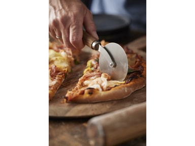 Enkel og funktionel pizzaskærer med hjul i rustfrit stål og et godt, langt håndtag af flot akacietræ. Modellen ligger godt i hånden og skærer nemt og hurtigt pizzaen ud i passende stykker.Læs mere om produktet