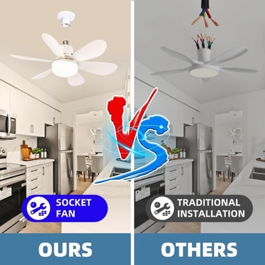 Loftsventilator med lys og fjernbetjening: Denne loftsventilator med lysudtag har et unikt design, der kombinerer en ventilator og et lys for at give dit værelse et blødt lys og en behagelig atmosfære.