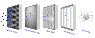 • UV-GI lysfilter, der neutraliserer vira og bakterier