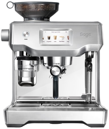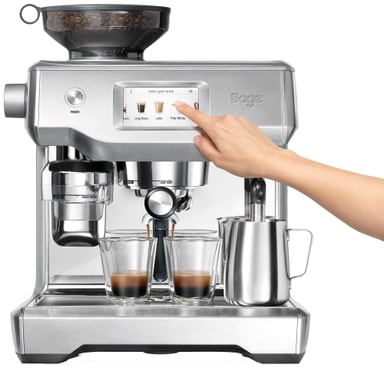 Med Sage Oracle Touch SES 990 UK espressomaskinen kan selv en nybegynder blive barista på ingen tid. Oracle er en eksklusiv atuomatisk espressomaskine med automatisk kværning, dosering, masning og mælketeksturering. Den flot designede maskine har mange praktiske funktioner og detaljer.