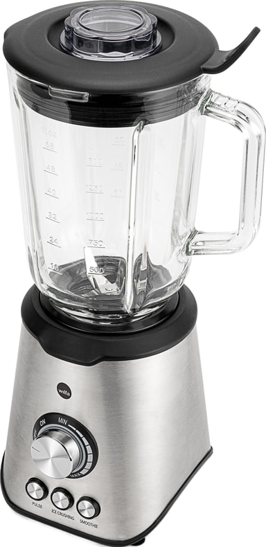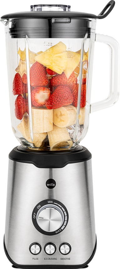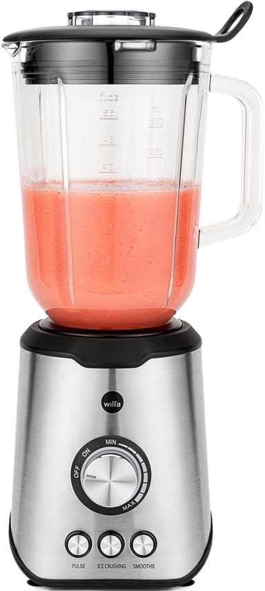 1.000-watt Wilfa blenderen BLPS-1000 har en 1,5-liters glasskål og håndterer let frugt, grøntsager, nødder og is. Den tilbyder trinløs hastighedskontrol sammen med turbo- og pulsfunktioner for alsidig og effektiv blanding.Læs mere om produktet