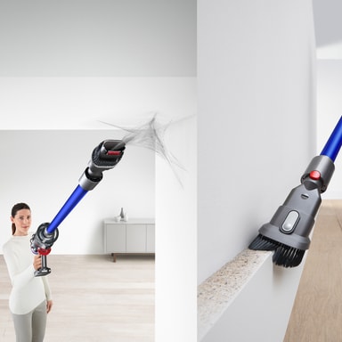 V11 er ledningsfri og kan omdannes til en håndholdt støvsuger med et enkelt klik på en knap, og den er lige så praktisk, som den er effektiv.