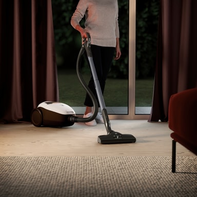 Løft støvsugeren let og komfortabelt med det specialdesignede bærehåndtag. Designet til afbalanceret løft og placeret i midten for at fordele vægten jævnt.