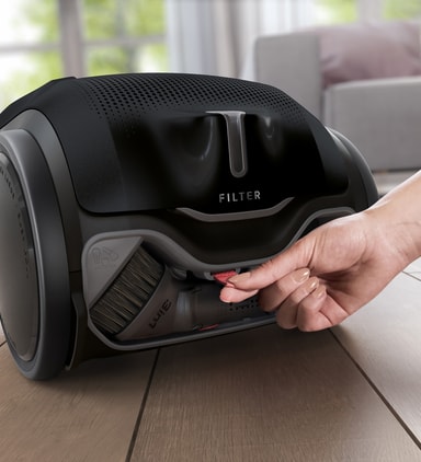 Støvsugeren kombinerer afstandsbetjening og digital brugerskærm, der giver dig en nem betjening over støvsugningen. Den digitale alarm, der viser, at posen er fuld, hjælper dig med at altid holde støvsugerens ydeevne på toppen.