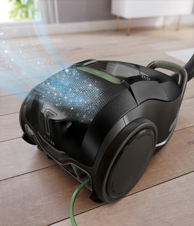 Støvsugeren er designet med tanke på miljøet og at være mere bæredygtig og er fremstillet af 70 % genbrugsplast.