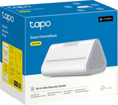 TP-Link Tapo H500 Smart HomeBase sikkerhedshubben giver dig forbedret kontrol og forbindelse til dine Tapo sikkerhedsenheder. Med avancerede funktioner som ansigtsgenkendelse og intelligent registrering sikrer denne hub dit hjem, samtidig med at den tilbyder problemfri integration med Tapo-økosystemet og Matter-understøttede enheder.