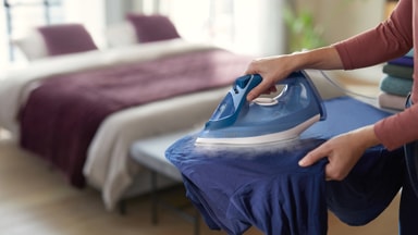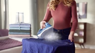 Kontinuerlig dampudgang på op til 40 g/min og dampboost på op til 180 g/min garanterer, at selv de mest genstridige folder fjernes effektivt.