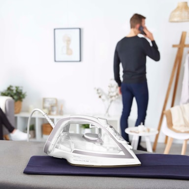 Tefal Puregliss-strygejernet FV8043E0 og dets effekt på 3.000 watt, der giver en almindelig dampydelse på 50 g/min, som kan stige til 280 g/min, når det er nødvendigt, hjælper dig med at gøre dit tøj klar til brug næsten uden anstrengelse. Takket være Durilium AirGlide AutoClean-teknologien og et Micro Calc-filter er det også nemt at holde den lige så ren som det tøj, du stryger med den.