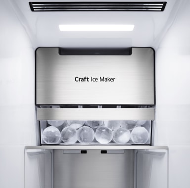 LG''s eksklusive Craft Ice™ får store runde isterninger til at smelte langsommere og køler drikkevarerne længere ned.