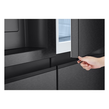 Dette stilfulde Side-by-Side køleskab i Essence Matte Black har gode funktioner til at bevare mad så længe som muligt og har også et meget flot design.