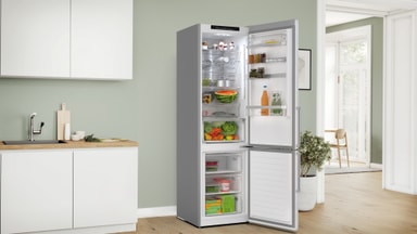 Med Total No Frost-teknologi skal du aldrig affroste din fryser igen. Den fjerner fugtighed og holder luften tør, hvilket forhindrer frost i at danne sig på væggene og på din mad. Dette gælder også for køleskabsområdet. Sig farvel til vanddråber og isdannelse på bagvæggen, hvilket sikrer et hygiejnisk indtryk. Ikke nok med at dette sparer dig besværet med affrostning og rengøring, det gør også din enhed mere energieffektiv.