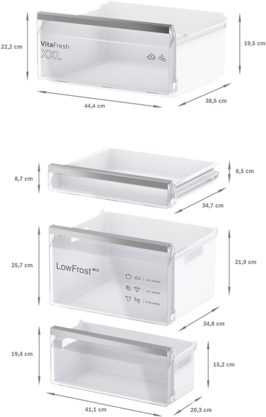 • 3 transparente fryseskuffer, inkl. 1 BigBox