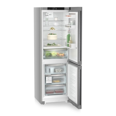 Liebherr CBNsda 5223-22 001 køle-/fryseskab i rustfrit stål byder på BioFresh-teknologi for længere friskhed, 320 liters nettovolumen i køleskabet, justerbare hylder og smart home-kompatibilitet i et elegant 185,5x59,7 cm design.Læs mere om produktet