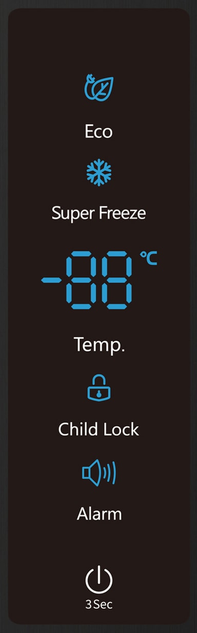 Få fuld kontrol over dine frostvarer med temperaturbetjeningsskærmen. Det justerer temperaturen, så den passer til dine behov og sikrer optimal tilstand for dine madvarer.