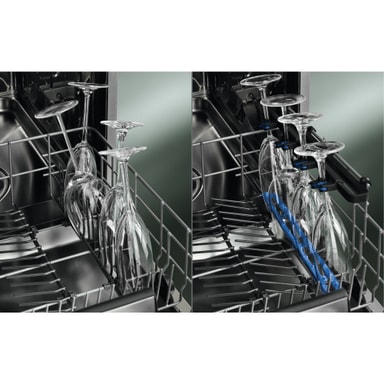 Dine glas holdes sikre og funklende med 700 GlassCare opvaskemaskinen. Vores unikke SoftGrips og SoftSpikes holder glassene skånsomt på plads i øverste kurv. GlassHolder tager skånsomt hånd om høje glas i nederste kurv.