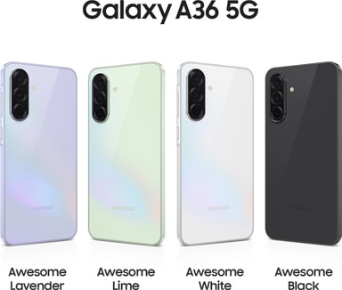 Samsung Galaxy A36 5G-smartphonen har en livagtig 6,7" FHD+ Super AMOLED-skærm, et 50 MP hovedkamera og langvarig ydeevne drevet af en Snapdragon octa-core processor og et 5.000 mAh batteri, alt sammen pakket ind i et elegant design.Læs mere om produktet