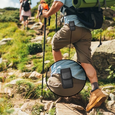 Det universelle mobiltelefontaske med bælteclips og karabinhage er den ideelle ledsager til på farten.