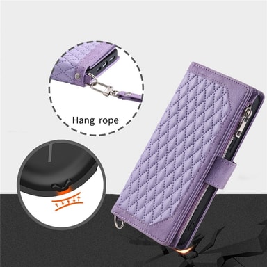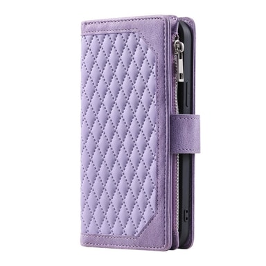 Elegant og funktionel pungtaske med quiltet rombemønster, der tilføjer et sofistikeret udtryk. Fremstillet af førsteklasses PU-læder med blød TPU-inderside for en behagelig følelse. Designet med flere kortlommer, en seddellomme og en lynlåslomme til mønter og småting. Kan foldes til et praktisk stativ til håndfri brug – ideel til video og opkald. Magnetlukning holder telefon og værdier sikre, og håndledsremmen gør den nem at bære. Giver fuld beskyttelse mod daglige stød og skader.