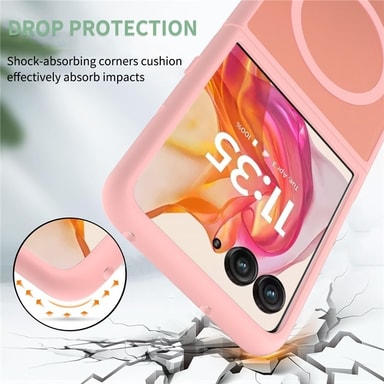 Oplev den silkebløde fornemmelse af Skin-touch Hybrid. Det fleksible TPU-materiale beskytter din telefon mod stød og ridser, mens den slanke profil bevarer telefonens elegante design. Med indbyggede magneter til MagSafe-kompatibilitet og præcise udskæringer for nem adgang til alle funktioner, er dette cover den perfekte kombination af stil og funktionalitet.