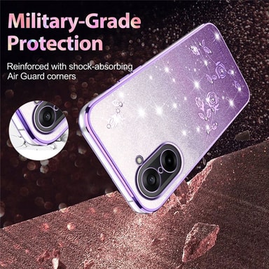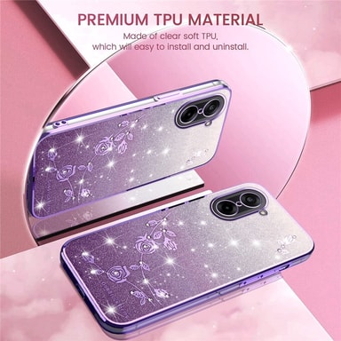 Giv din telefon et strejf af glamour med KADEM Glitter. Dette cover har et smukt evighedsblomst-design med funklende rhinsten, der giver din telefon et elegant og iøjnefaldende look. Den graduerende glittereffekt tilføjer et unikt touch, mens det holdbare TPU-materiale beskytter mod hverdagens slid. Med præcise udskæringer for alle porte og knapper er funktionaliteten bevaret. Coveret er nemt at montere og passer perfekt til din telefon.