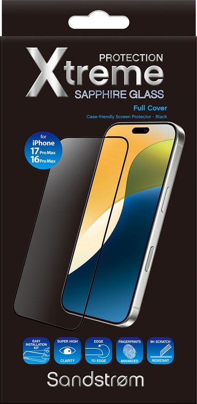 • Sandstrøm Sapphire skærmbeskytter til iPhone 17 Pro Max