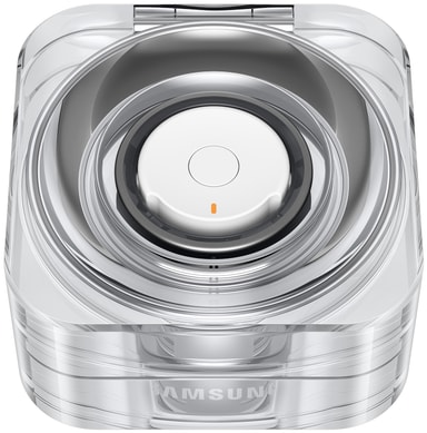Selv når den oplades i sit krystalklare opladningsetui, er Galaxy Ring et skønt syn. Det bløde skær fra lyset omkring den alsidige knap indikerer batteriets opladningsniveau. Opladningsetuiet kan også oplades trådløst, så sæt blot din Galaxy Ring sikkert i sit etui, når du er på farten, og placér den på en trådløs opladningsplade. Det giver nem opladning.