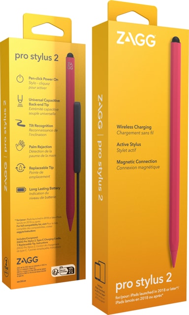 Denne Zagg Pro Stylus 2 tabletstylus er fuld af fantastiske funktioner. Hældningsgenkendelse og håndfladeafvisning, trådløs opladning, Dual-tip, 6,5 timers batteriliv, og så meget mere. Gør din iPad til en notesbog eller skitsebog med bare et klik.Læs mere om produktet