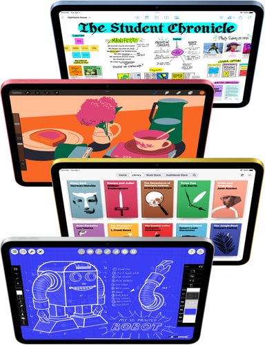 iPad har en smuk Liquid Retina-skærm med True Tone.* Den superhurtige A16-chip og iPadOS gør iPad til et fantastisk værktøj, når du vil være kreativ, samarbejde og gøre alle de ting, du holder af. Få endnu flere muligheder med tilbehør, der er designet specielt til iPad.