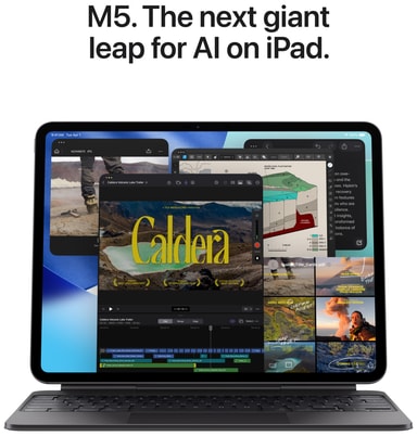 YDEEVNE OG LAGERPLADS – iPad Pro med M5 giver dig banebrydende hastighed og AI på selve enheden til optimering af dine arbejdsprocesser.1 Den har op til 2 TB lagerplads, 16 GB hukommelse og Neural Accelerators, der løfter AI-ydeevnen til nye højder.3