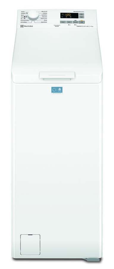 600 topbetjent vaskemaskine med SensiCare system tilpasser programvarighed efter tøjmængden. Det bruger den rette mængde vand, tid og energi til at sikre perfekt pleje af vasketøjet. Tøjet holder sig flot dobbelt så længe.