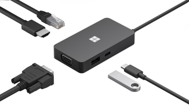Denne Surface USB-C hub lader dig udvide forbindelsesmulighederne på din computer. Der er en USB-A og en USB-C-port til dataoverførsel og opladning af tilbehør, HDMI- og VGA-porte til ekstra skærme og en Ethernet-port til kablet internetforbindelse.Læs mere om produktet