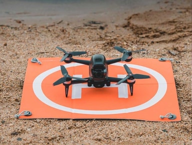 Pgytech her med en 50x50cm landingspad for droner og helikopter. Denne padden er vantett, uv-resistent og perfekt for mindre til mediumstore droner. Perfekt for DJI FPV, Mini og Air-serien. Landing Pad Pro er oransje på den ene siden og blå på den andre.