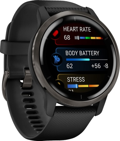 Garmin Venu 2-serien giver dig lang batterilevetid – helt op til 11 dage faktisk. Hurtigopladning sikrer desuden, at du hurtigt er på farten igen, hvis batteriet løber tør. Desuden får du avanceret sundhedsovervågning og fitnessfunktioner, der hjælper dig med bedre at forstå, hvad der foregår inde i din krop. Gør brug af animerede træningsprogrammer og få mere end 25 indbyggede indendørs- og GPS-sportsapps. Og så kan du forkæle din sjæl med din yndlingsmusik – op til 650 sange – uden behov for din telefon, når du lytter.